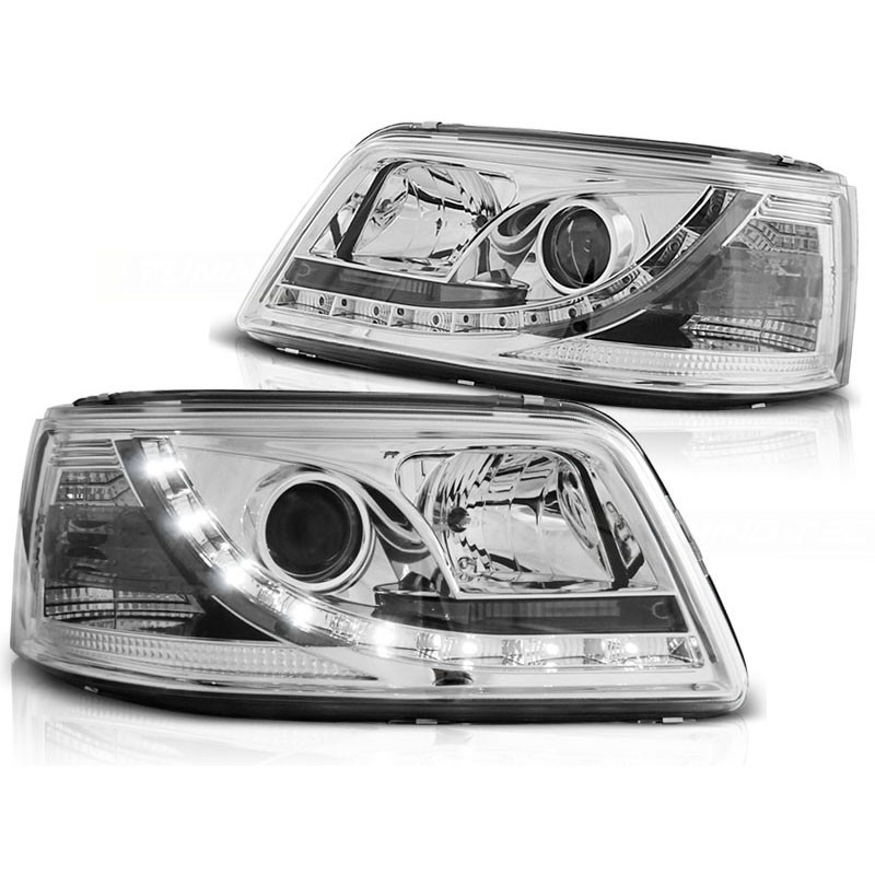 PAIRE DE PHARES AVANTS DEVIL EYES (BANDES LED) AVEC FEUX DE JOUR INTÉGRÉS - VERSION FONDS CHROMÉS