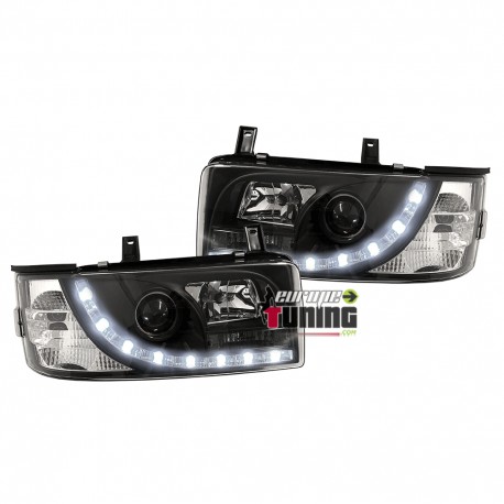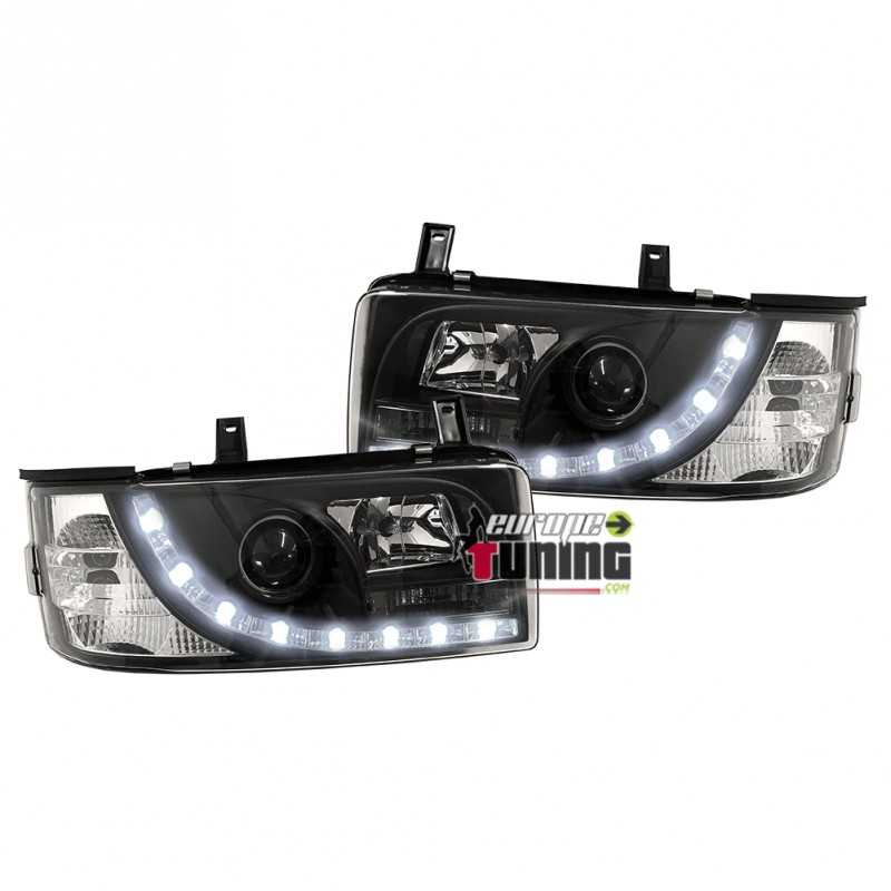 PAIRE DE PHARES AVANTS DEVIL EYES (BANDES LED) AVEC CLIGNOTANTS INTEGRES - VERSION FONDS NOIRS