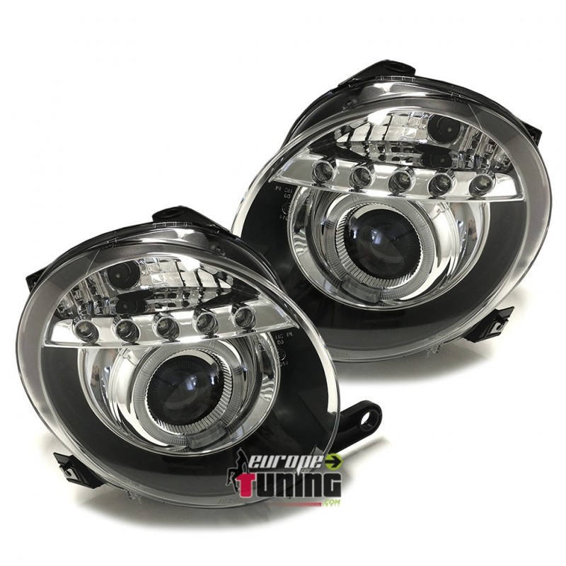 PAIRE D'OPTIQUES DE PHARES AVANTS FONDS NOIRS AVEC ANNEAUX LED ET BANDES LED
