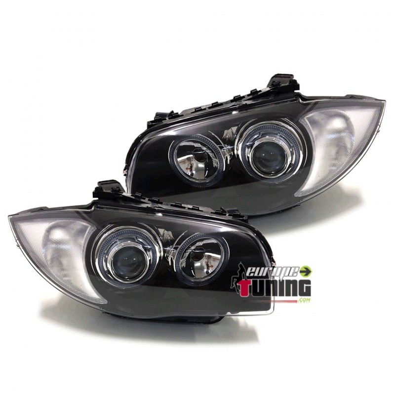 PAIRE DE PHARES AVANTS NOIRS ANNEAUX ANGEL EYES A LED BMW Série 1