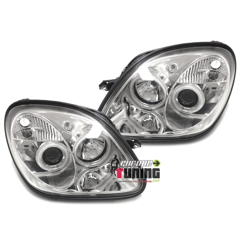 PHARES ANGEL EYES LED CCFL - ANNEAUX EN FIBRE OPTIQUE - AVEC CLIGNOTANTS INTÉGRÉS - VERSION FONDS CHROMÉS