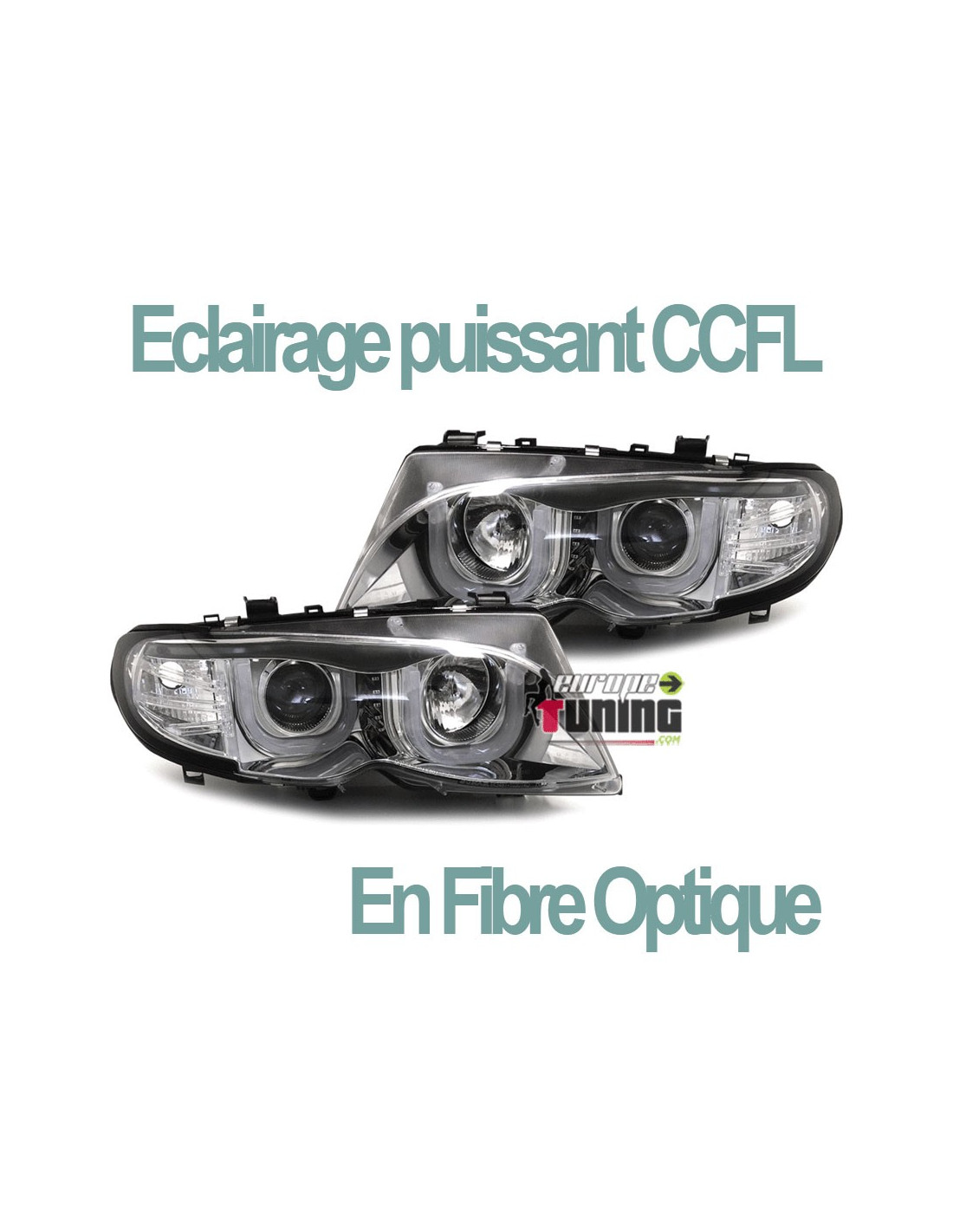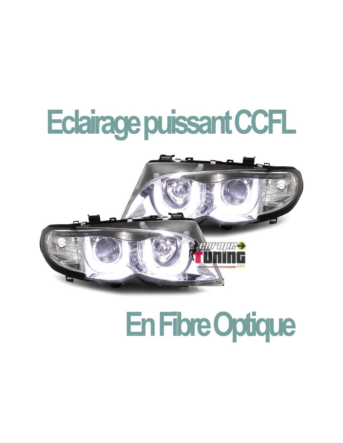 PAIRE DE PHARES AVANTS CHROME ANNEAUX ANGEL EYES CCFL EN FIBRE OPTIQUE