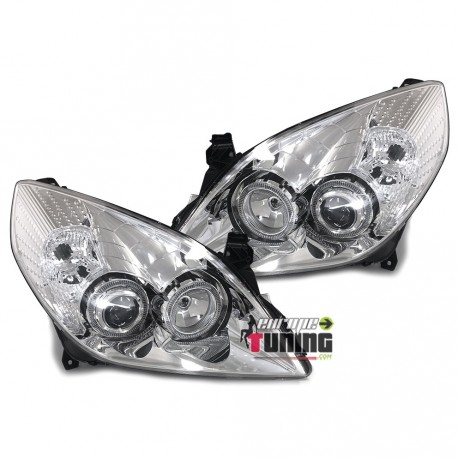 PAIRE DE PHARES AVANTS AVEC ANNEAUX ANGEL EYES A LEDS - FONDS CHROMES