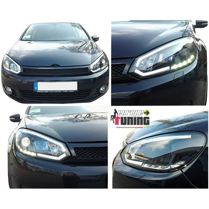 PAIRE DE PHARES AVEC FEUX DE JOUR (DIURNE - DRL - R87) SUR FONDS NOIRS LOOK PACK XENON POUR VOLKSWAGEN GOLF VI