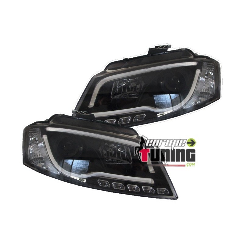 Paire de phares avants noirs tube light bar led de jour (diurnes - drl - r87) Audi A3 8P2 de 2008 à 2013