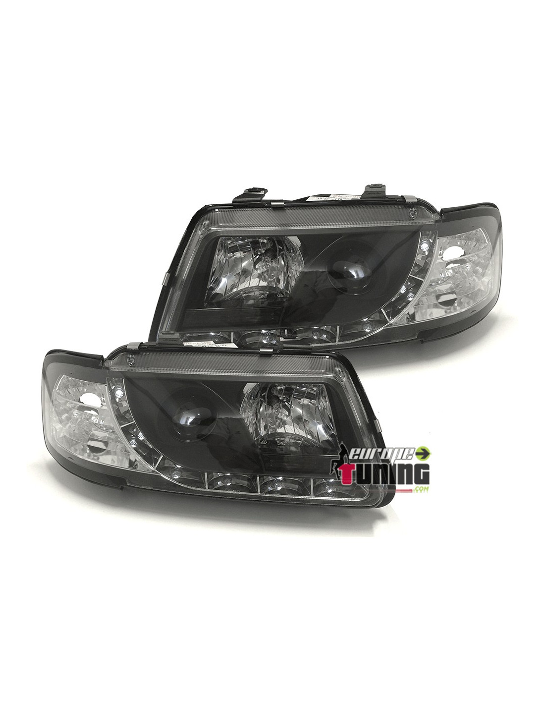 PAIRE DE PHARES AVANTS DE JOUR (DIURNES-DRL-R87) AUDI A3 8L PHASE 1 AVEC CLIGNOTANTS INTEGRES - VERSION NOIRE