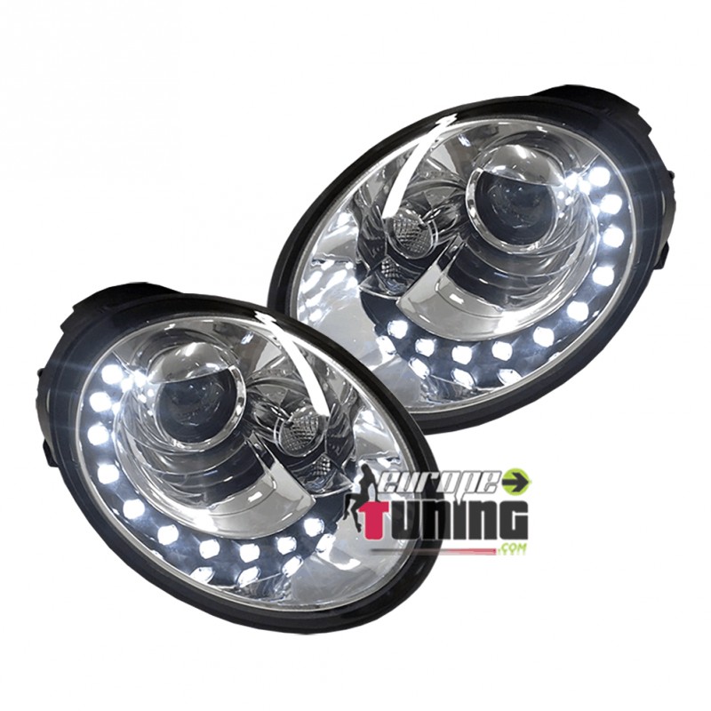 PAIRE D'OPTIQUES DE PHARES AVANTS CHROME "DEVIL EYES" A BANDES LED