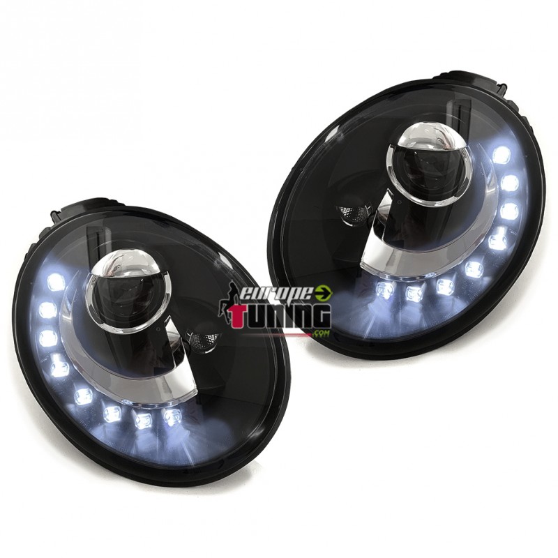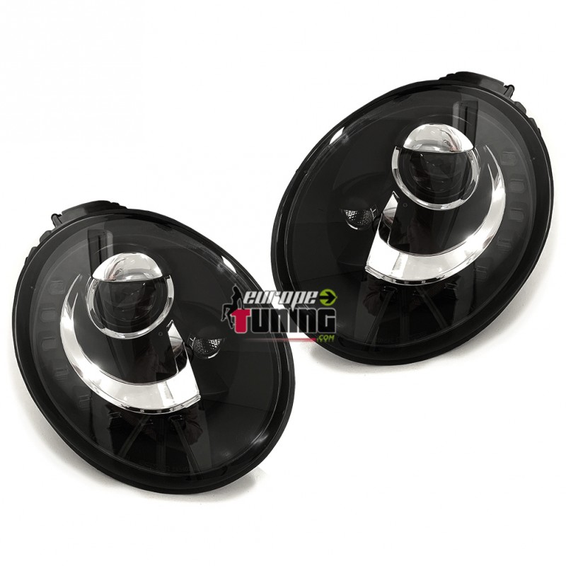 PAIRE D'OPTIQUES DE PHARES AVANTS NOIRS "DEVIL EYES" A BANDES LED