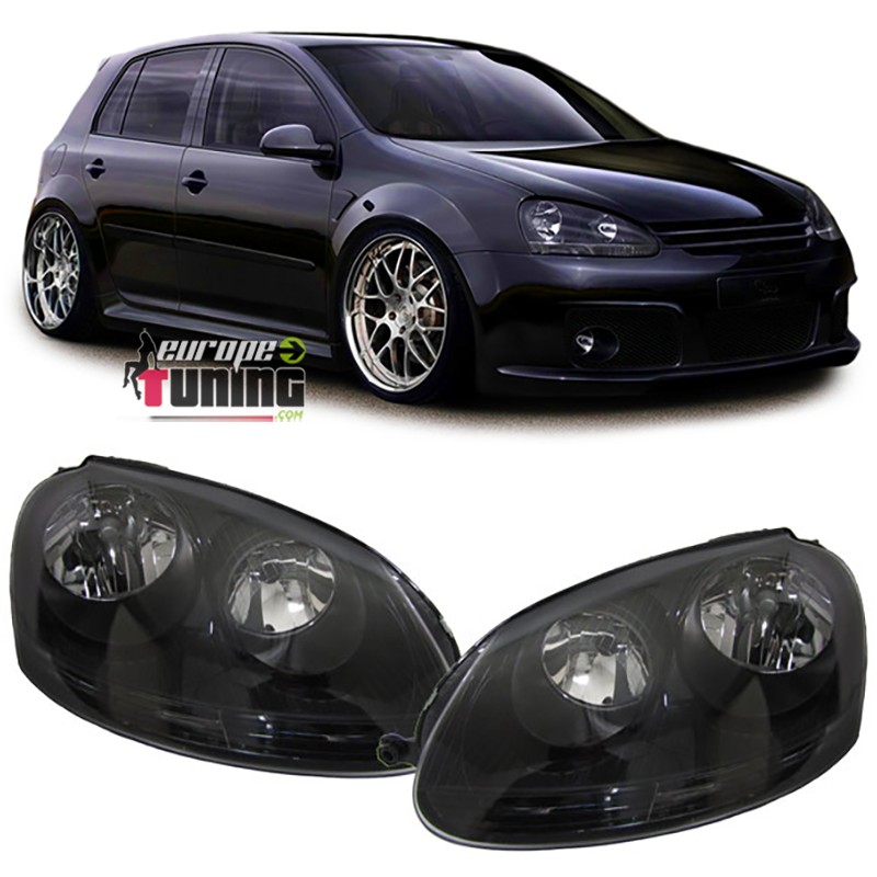 PAIRE D'OPTIQUES DE PHARES AVANTS A FONDS NOIRS LOOK PACK GTI POUR VOLKSWAGEN