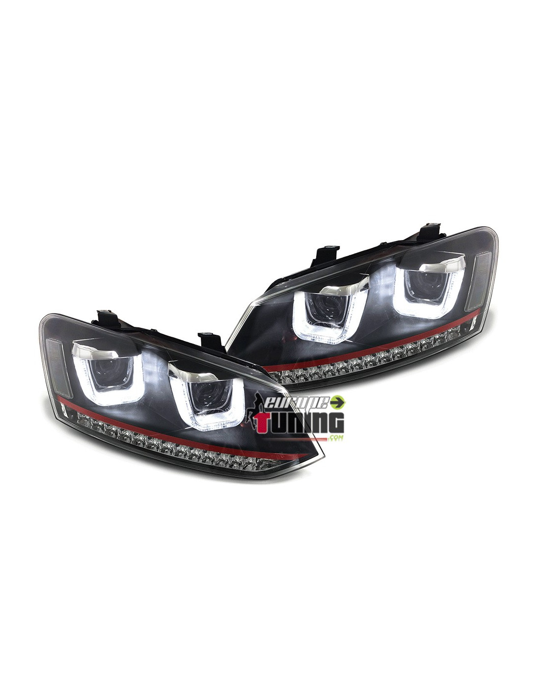 PAIRE DE PHARES AVANTS NOIRS ANGEL EYES CCFL EN FORME DE U