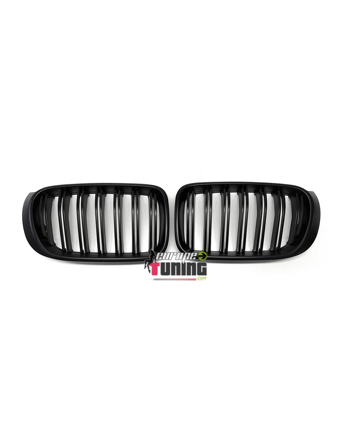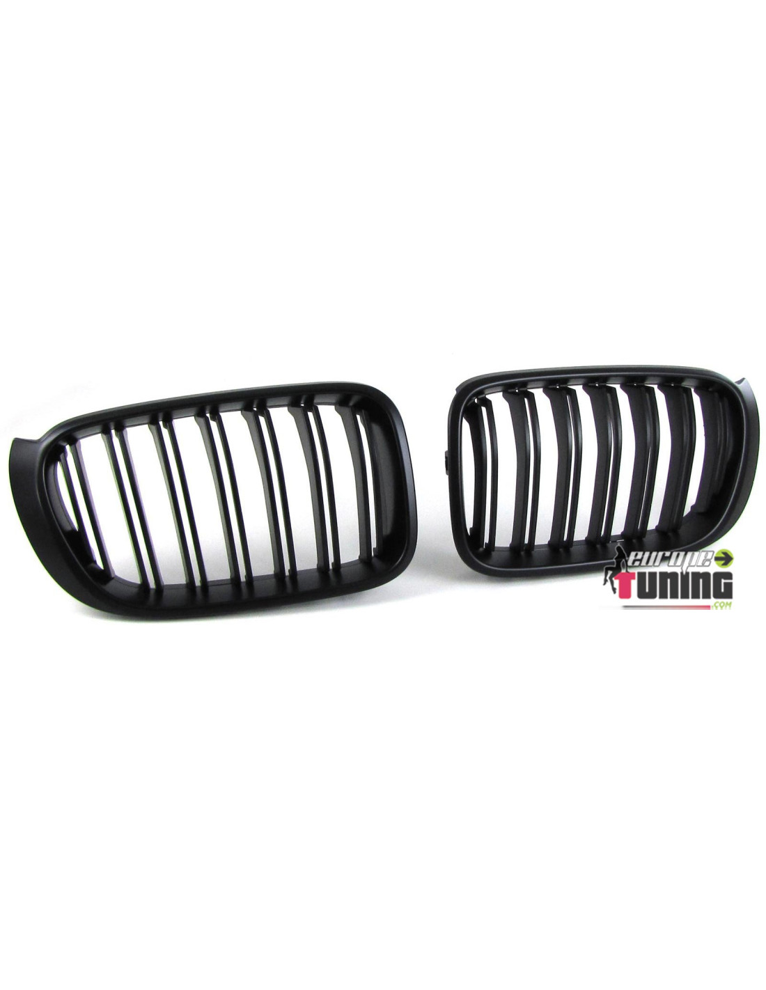 2 GRILLES DE CALANDRES SPORT NOIRES MATES A DOUBLE AILETTES
