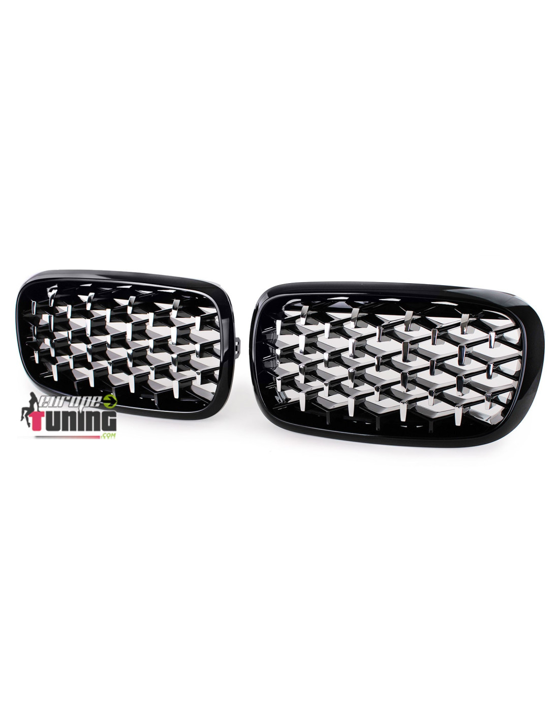 GRILLES DE CALANDRES SPORT STYLE DIAMANT AVEC CADRES NOIRS ET POINTS CHROMES