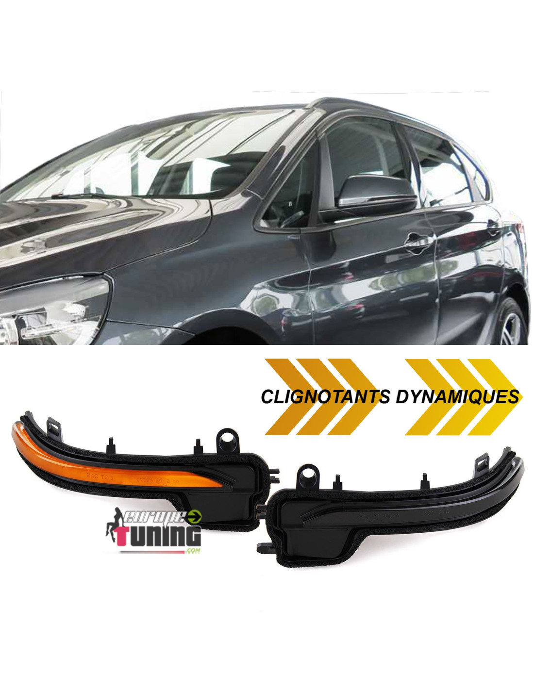 2 CLIGNOTANTS FUMÉS NOIRS POUR RÉTROVISEURS DE BMW X1 TYPE F48 ET SERIE 2 TYPES F45 F46