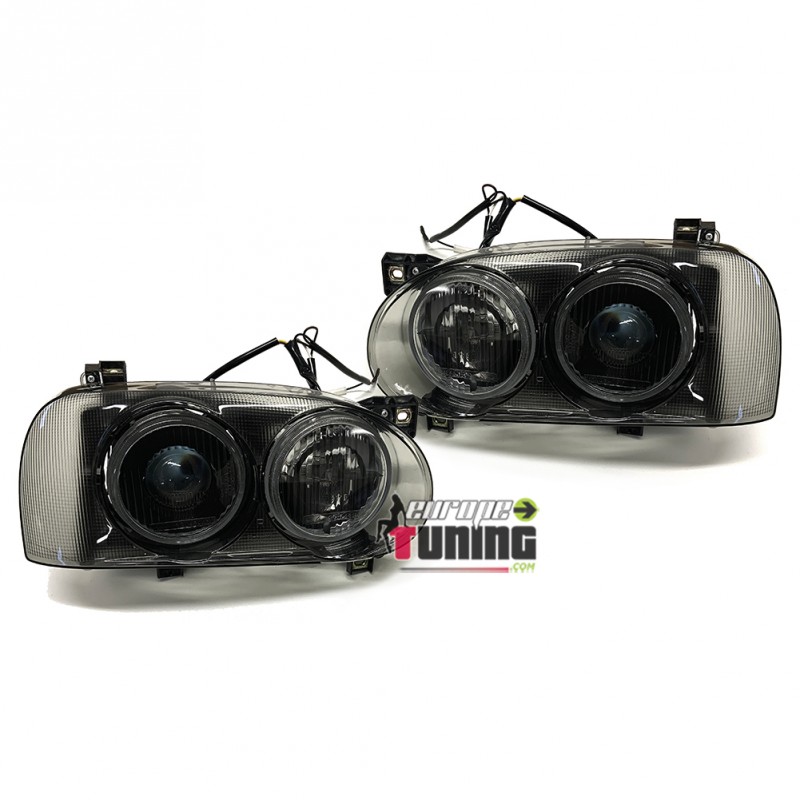 PAIRE D'OPTIQUES - FEUX AVANTS - RACE FUMES NOIRS POUR VOLKSWAGEN GOLF 3