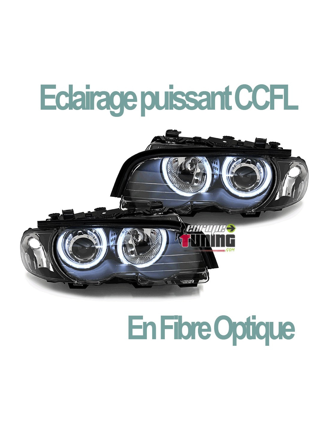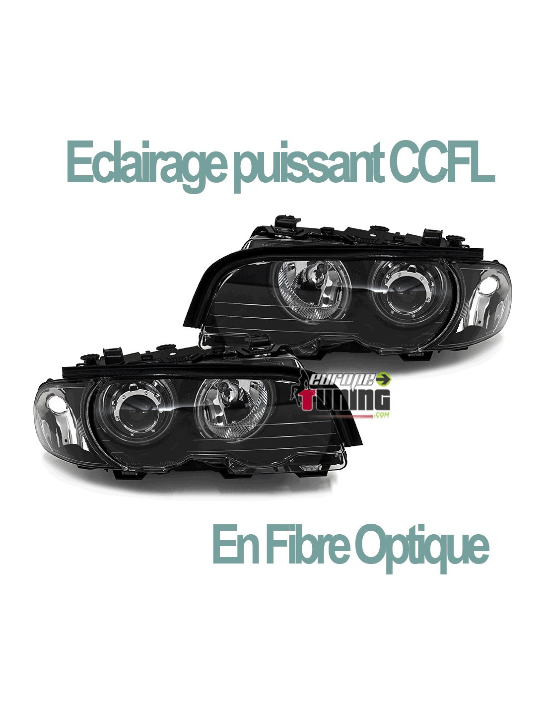 2 PHARES AVANTS NOIRS A ANNEAUX ANGEL EYES CCFL EN FIBRE OPTIQUE