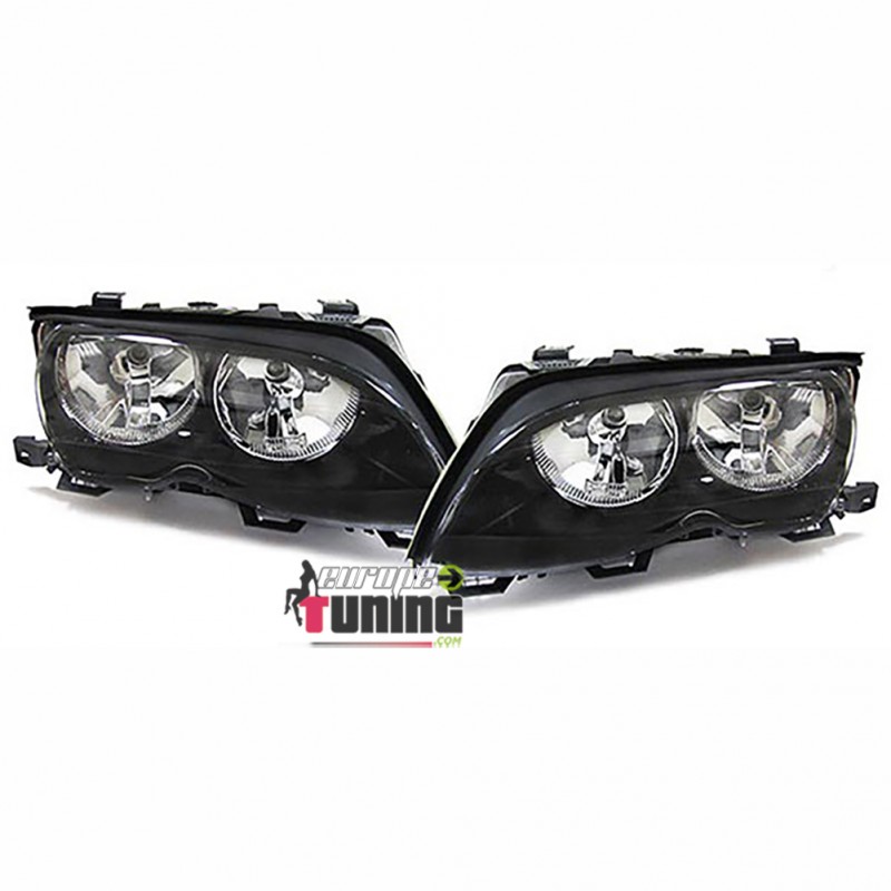 PAIRE D'OPTIQUES DE PHARES AVANTS NOIRS BMW SERIE 3 TYPE E46 5 PORTES