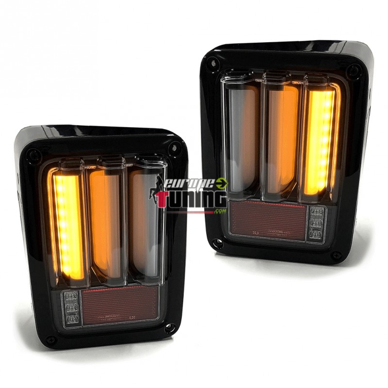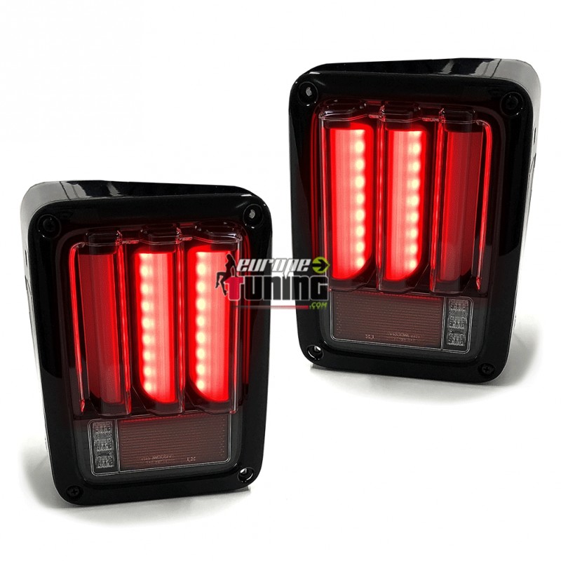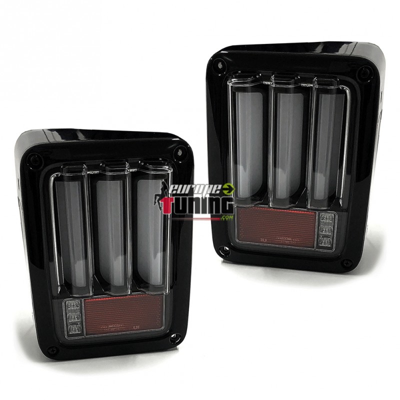 2 FEUX ARRIERES NOIRS A LED AVEC TUBES CELIS LOOK PACK SPORT POUR JEEP WRANGLER JK