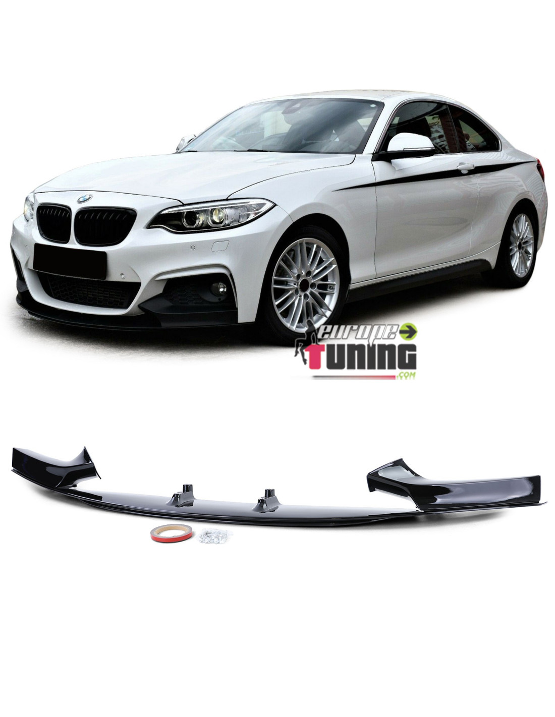 SPOILER NOIR BRILLANT POUR PARE-CHOCS AVANT SPORT DE BMW SERIE 2 F22 A PARTIR DE 2013