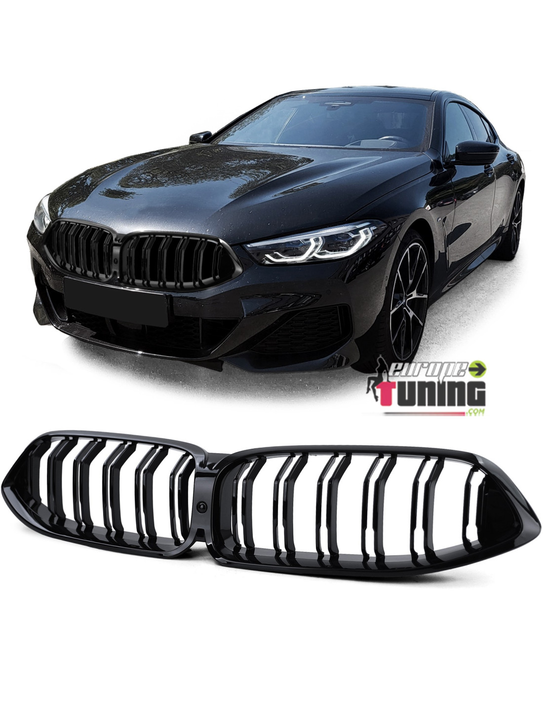GRILLE ADAPTABLE - CALANDRE SPORT DOUBLES LAMES LIGNE M PERFORMANCE - NOIR BRILLANT