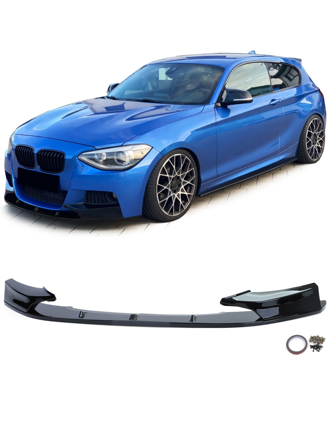 SPOILER NOIR BRILLANT POUR PARE-CHOCS AVANT SPORT DE BMW SERIE 1 F20 & F21 DE 2010 A 21014