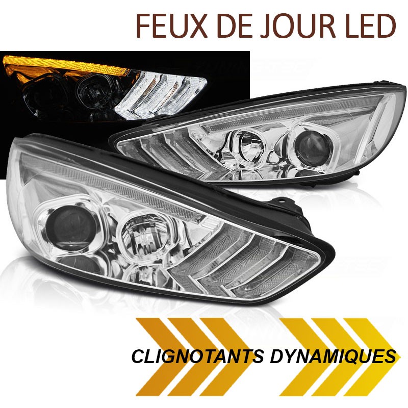 PAIRE DE PHARES AVEC FEUX DE JOUR LED ET CLIGNOTANTS LED DYNAMIQUES - VERSION FONDS CHROMÉS