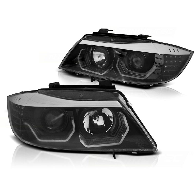 PAIRE DE PHARES AVANTS AVEC CLIGNOTANTS LED ET ANNEAUX LED 3D - VERSION FONDS NOIRS