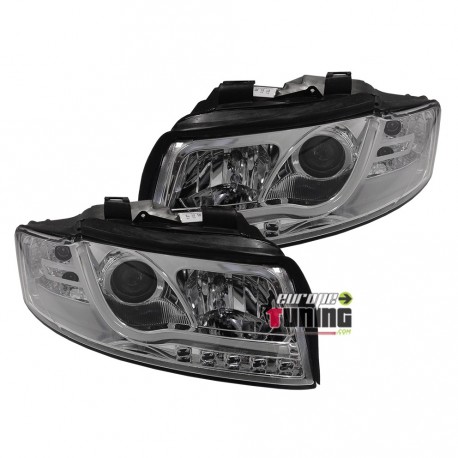 PAIRE DE PHARES AVANTS CHROME TUBE LED LIGHT BAR AUDI A4 B6/8E Berline et Break