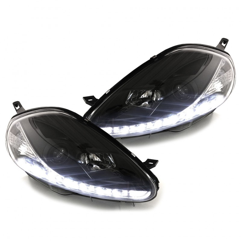 PAIRE DE PHARES AVANTS DEVIL EYES (BANDES LED) AVEC FEUX DE JOUR INTÉGRÉS - VERSION FONDS NOIRS
