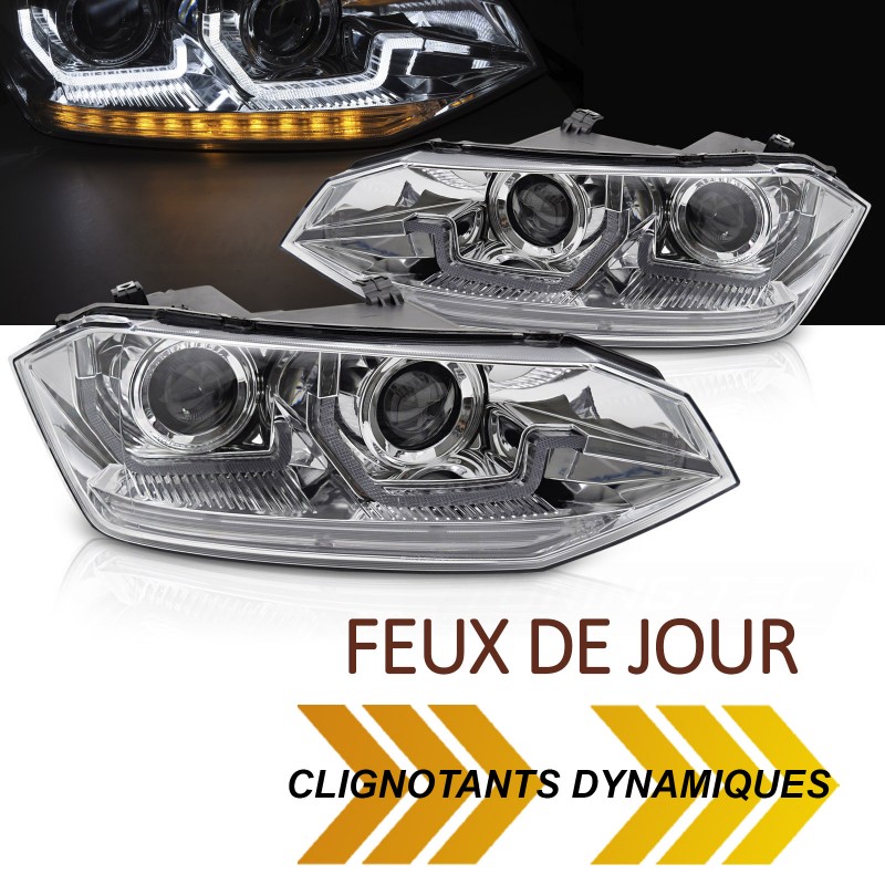 PAIRE DE PHARES AVEC FEUX DE JOUR ET CLIGNOTANTS DYNAMIQUES - VERSION FONDS CHROMÉS