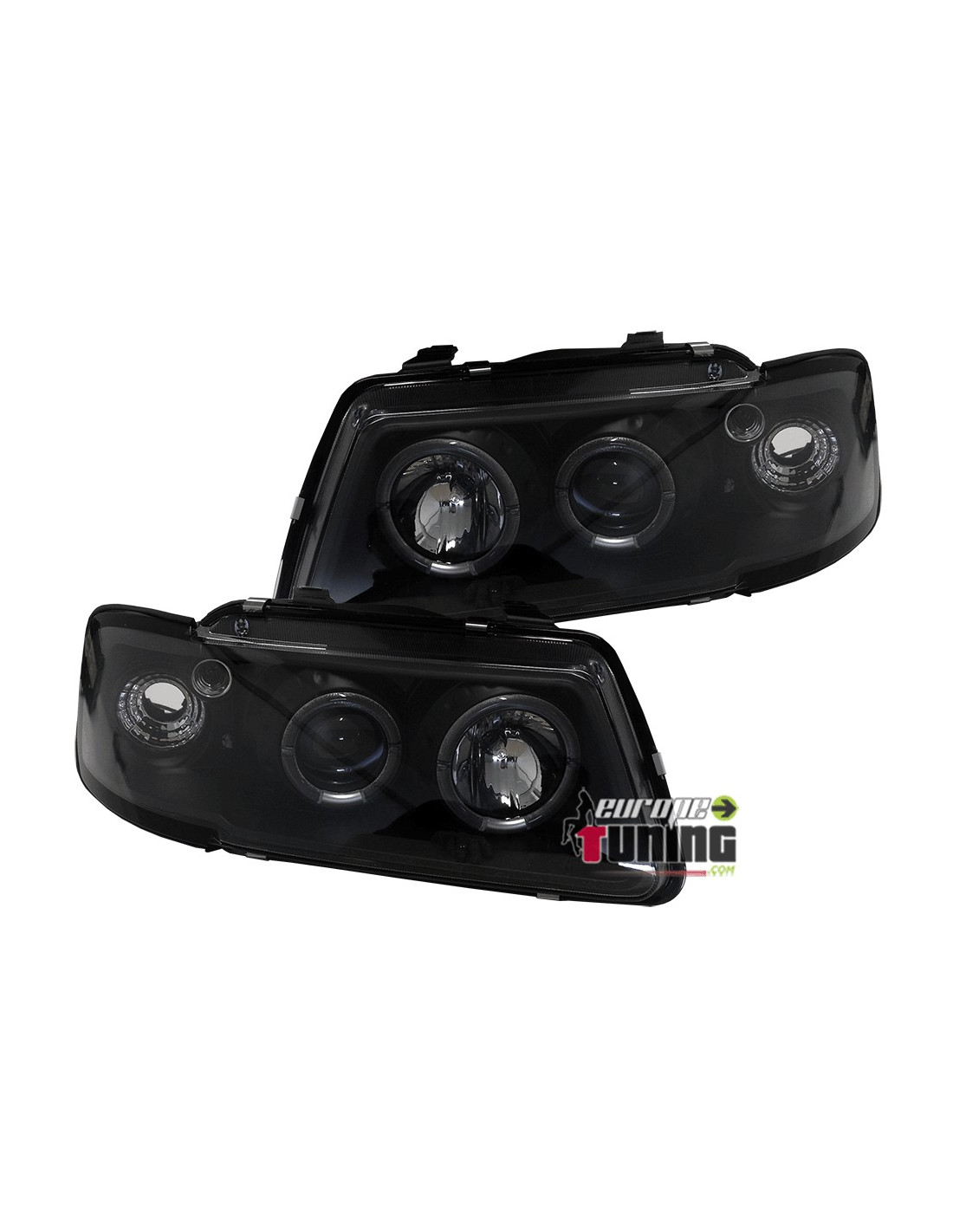 PAIRE DE PHARES AVANTS ANGEL EYES NOIRS AUDI A3 8L PHASE 1 AVEC CLIGNOTANTS INTEGRES