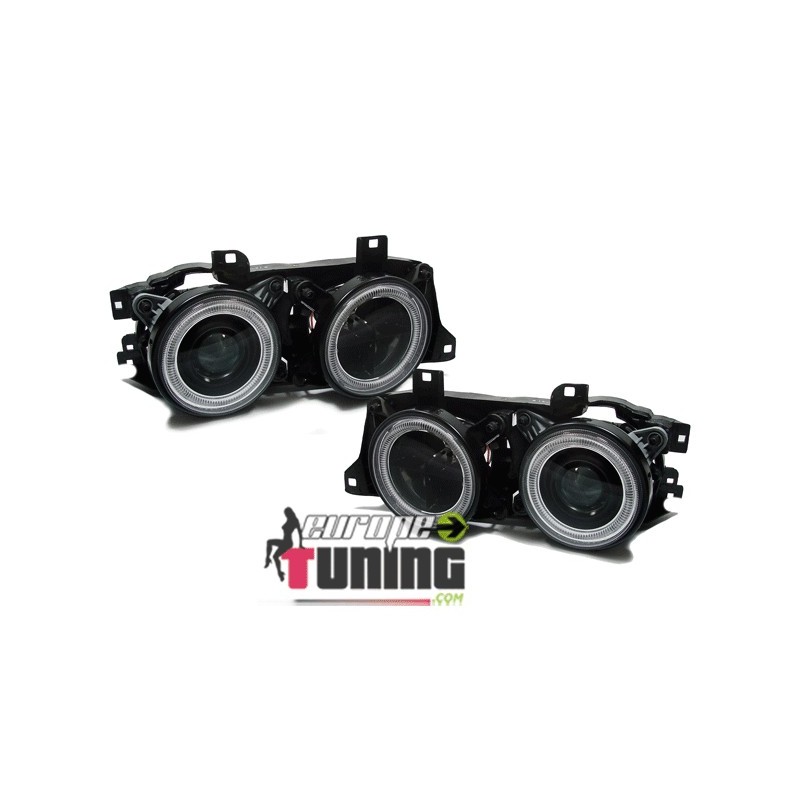 PAIRE DE PHARES AVANTS ANGEL EYES FONDS NOIRS BMW