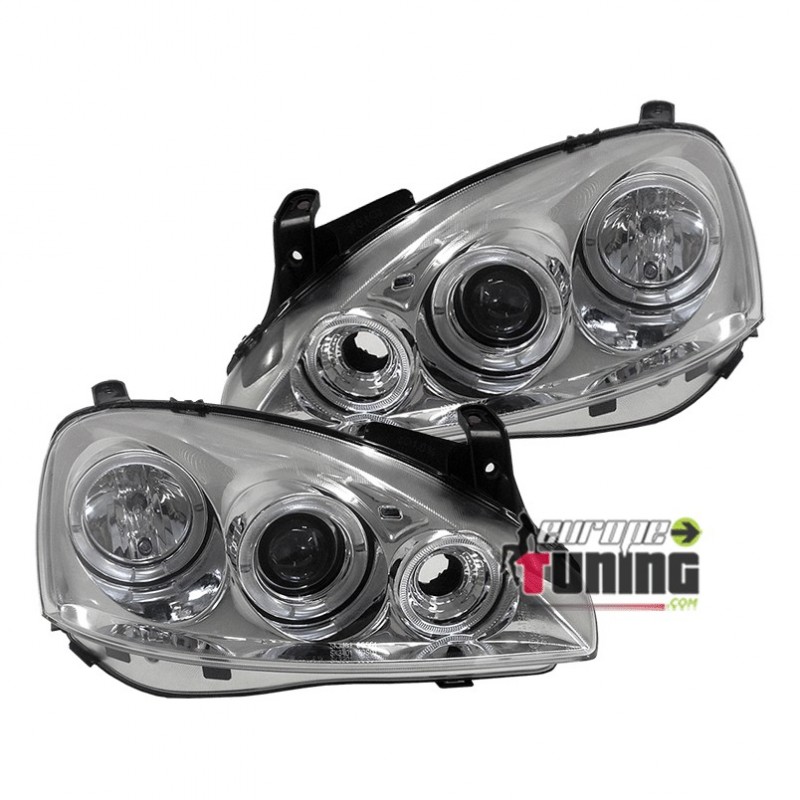 PAIRE DE PHARES AVANTS ANGEL EYES A LED OPEL CORSA C