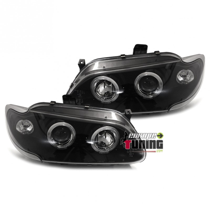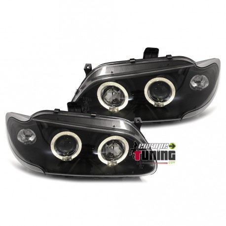 PAIRE D'OPTIQUES DE PHARES AVANTS NOIRS "ANGEL EYES" A ANNEAUX LED