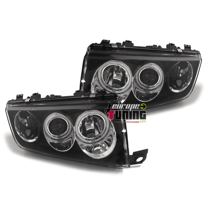 PAIRE DE PHARES AVANTS NOIRS A ANNEAUX LED CCFL SKODA FABIA I DE 1999 A 2008