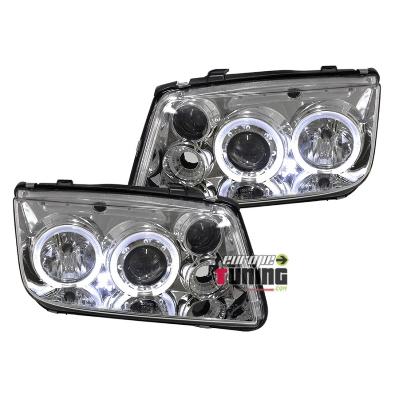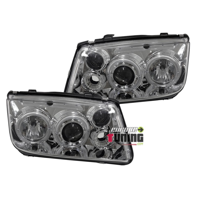 2 OPTIQUES AVANTS CHROME "ANGEL EYES" DOUBLE ANNEAUX POUR VOLKSWAGEN BORA