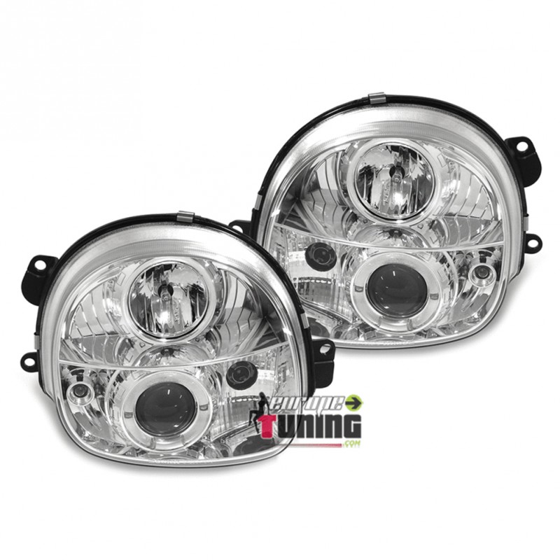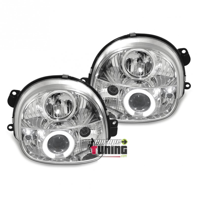 PAIRE D'OPTIQUES DE PHARES AVANTS CHROME "ANGEL EYES" A ANNEAUX LED