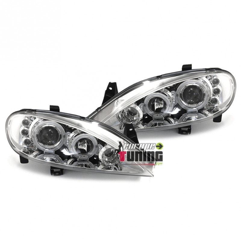 PAIRE D'OPTIQUES DE PHARES AVANTS CHROME "ANGEL EYES" A ANNEAUX LED + 3 PETITES VEILLEUSES