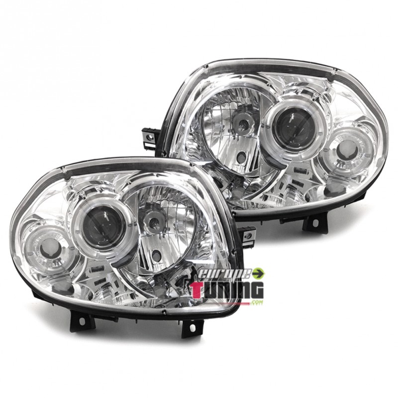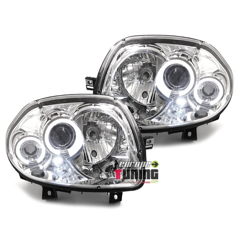 PAIRE D'OPTIQUES DE PHARES AVANTS CHROME "ANGEL EYES" A ANNEAUX LED