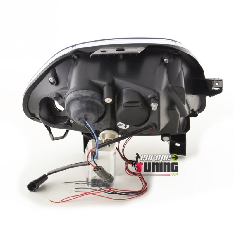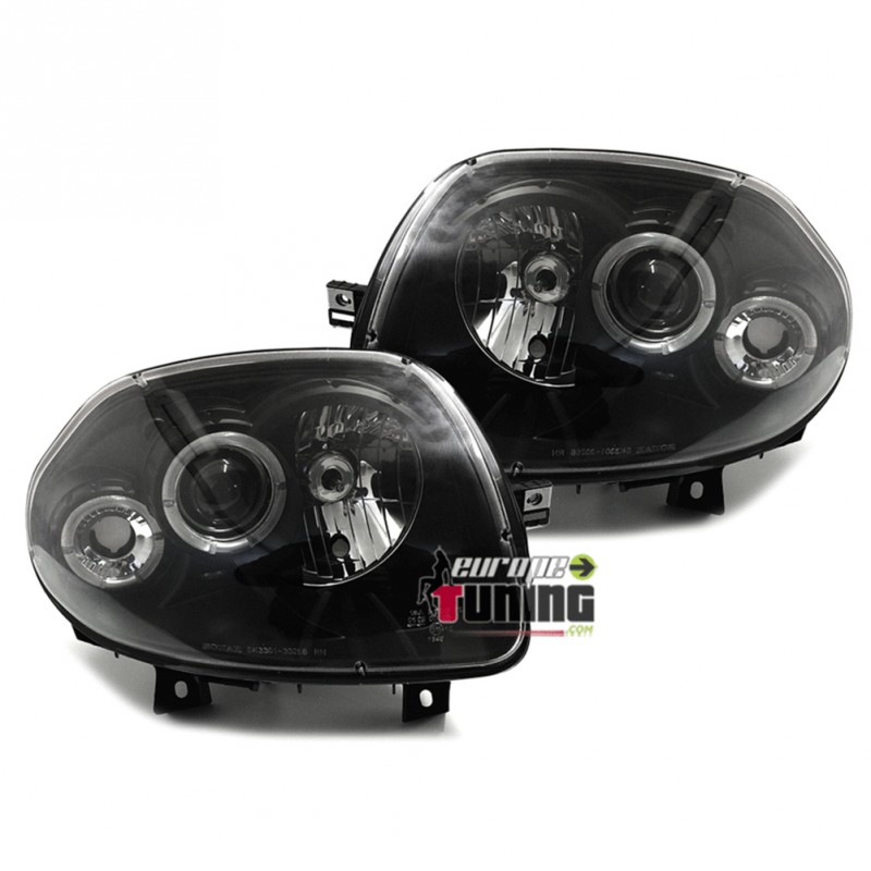 PAIRE D'OPTIQUES DE PHARES AVANTS NOIRS "ANGEL EYES" A ANNEAUX LED