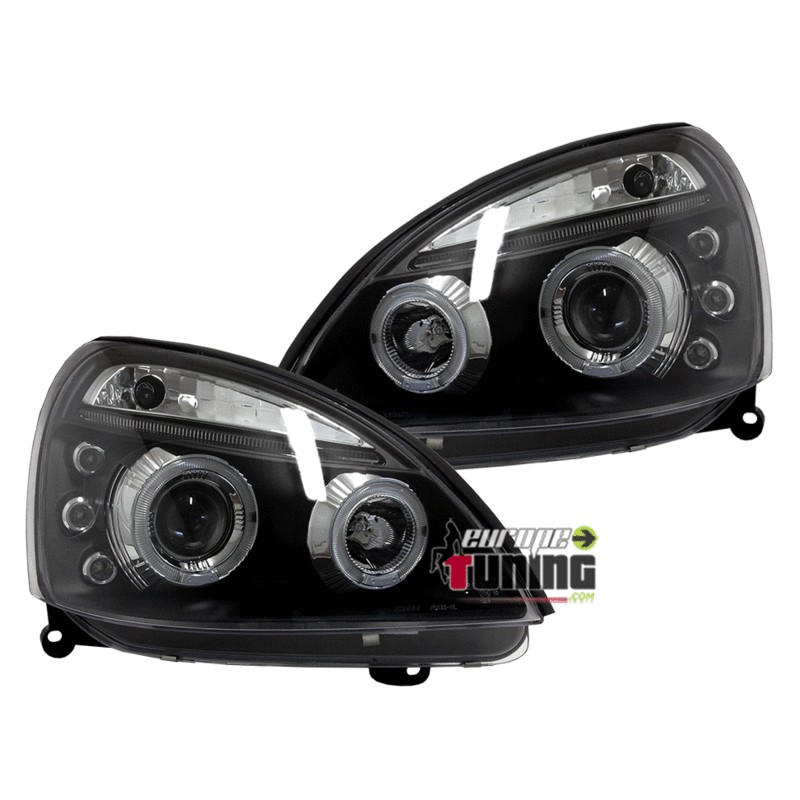 PAIRE D'OPTIQUES DE PHARES AVANTS NOIRS "ANGEL EYES" A ANNEAUX LED