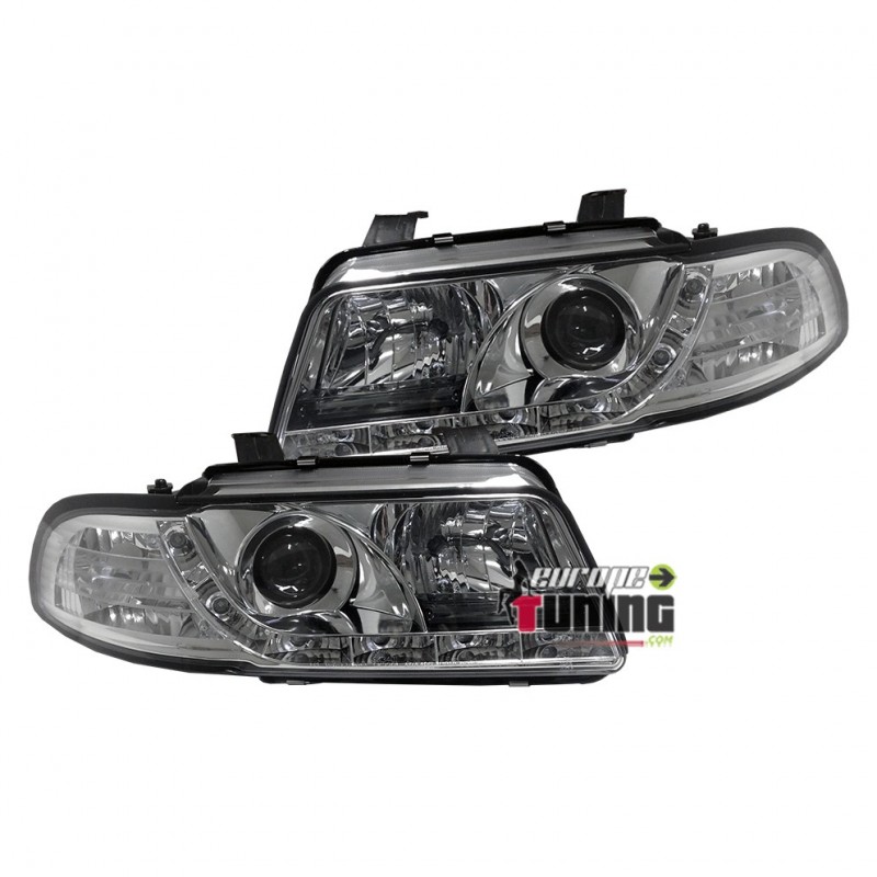 PAIRE DE PHARES AVANTS DEVIL EYES CHROME A LED AUDI A4 B5 PHASE 1 AVEC CLIGNOTANTS INTEGRES